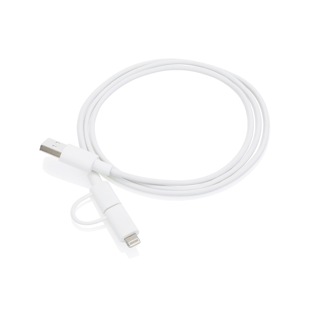 Cable de carga y sincronización con licencia MFi (siglas en inglés de «para iPhone e iPad»). Incluye un conector Lightning con licencia MFI y un conector micro USB para cargar y sincronizar otros dispositivos. Longitud: 1 metro