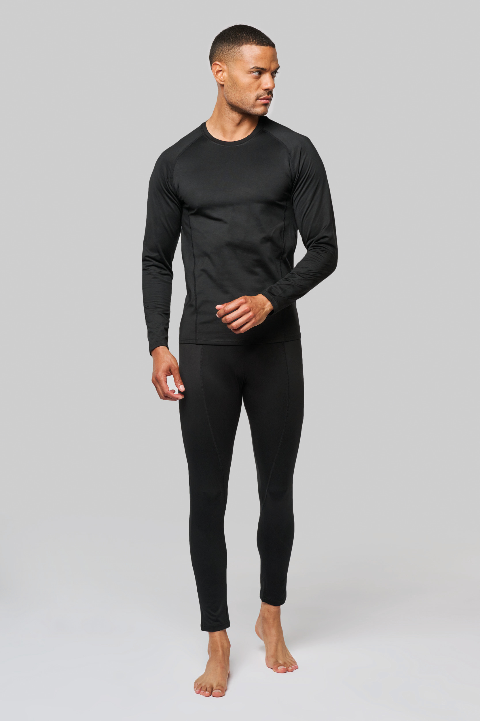 200 g/m² - 88% poliéster / 12% elastán. Cuello redondo. Costuras de los paneles con pespuntes a tono. Acabado de doble pespunte en la parte inferior de la manga y prenda.
