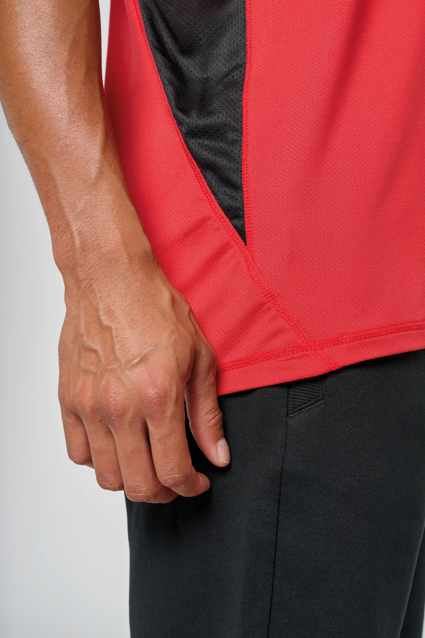 - Cortes laterales en los hombros y bajo las mangas con malla calada para mejorar la libertad de movimiento.