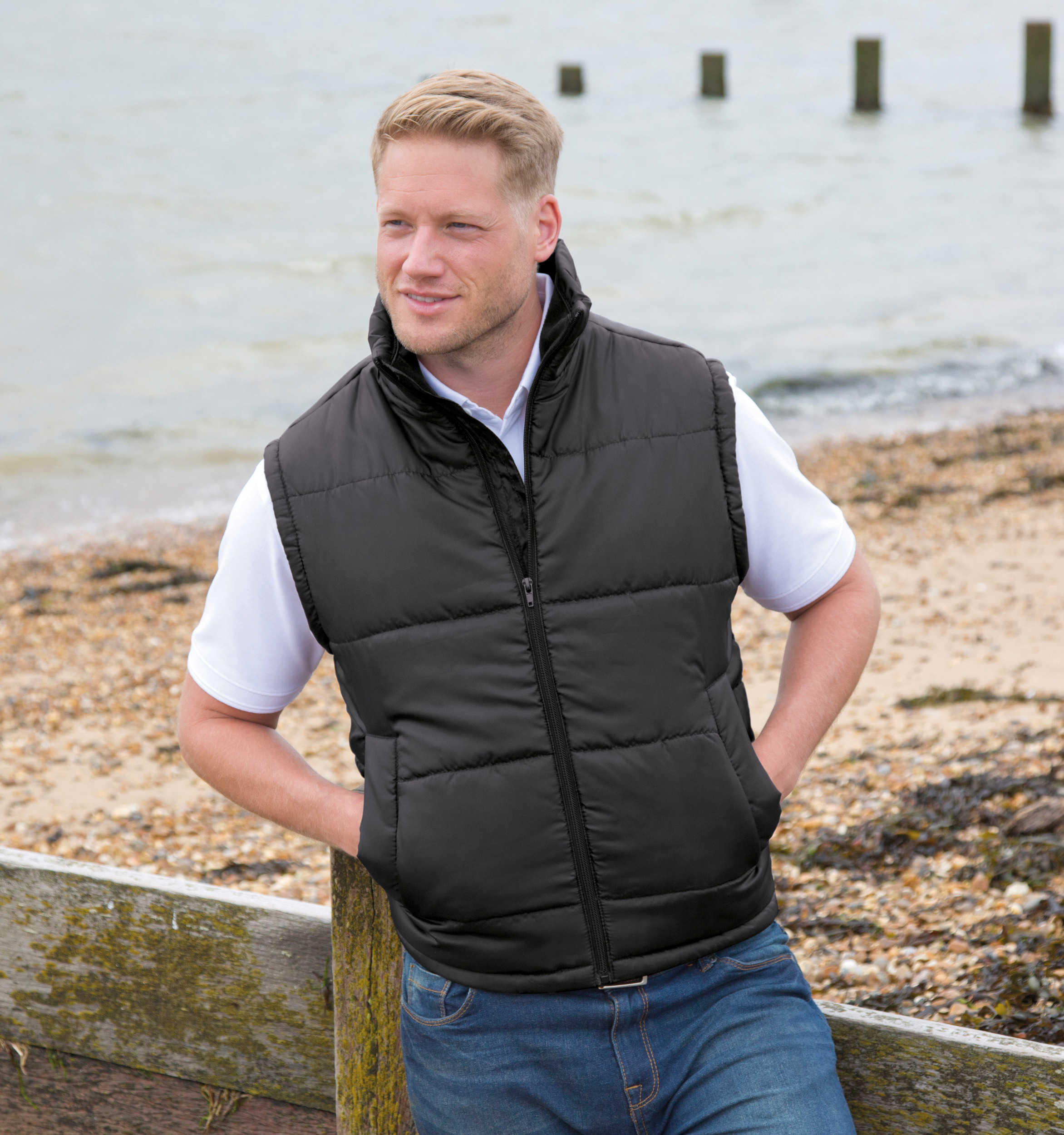Exterior: 100% poliéster 55 g/m². Forro: relleno de guata 100% poliéster. Secado rápido, ligero, cortavientos y resistente al agua. Ideal para llevarlo encima de un polar. Cierre con cremallera con solapa interior de protección. Sisas amplias para una mayor comodidad. 2 bolsillos y 1 bolsillo interior. Abertura con cremallera en la costura lateral izquierda para la personalización.