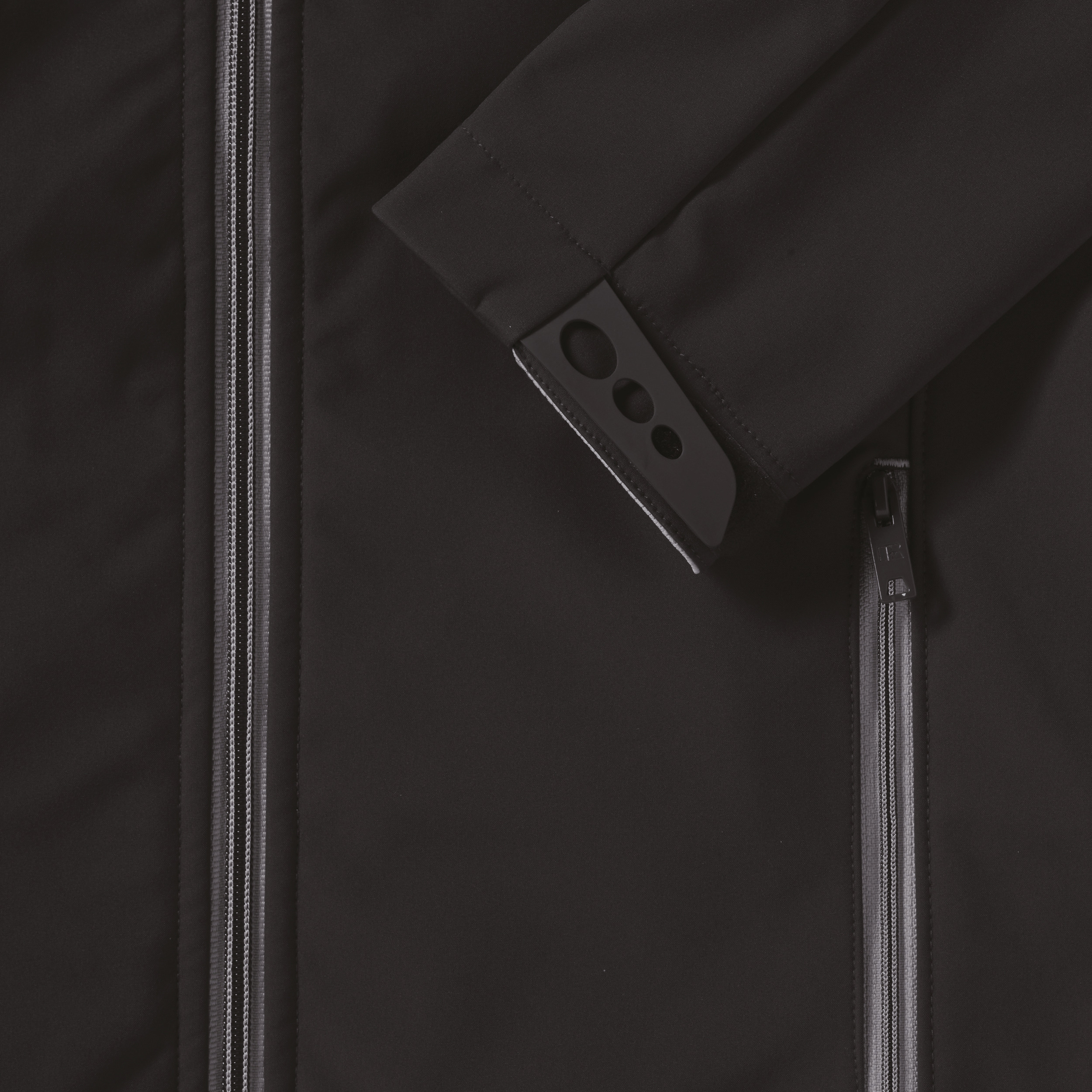 Softshell de 3 capas 94% poliéster / 6% elastán con acabado DWR Bionic-Finish® Eco. Material innovador de altas prestaciones, sin flúor ni PFC, con membrana hidrófuga 5000 mm, cortavientos y transpirable 5000 g/m²/24h. Cremalleras y detalles contrastados. Protector de mentón. Cuello alto y solapa antitempestad interior. Canesús ventilados Hydroshell en axilas. Forro delantero de tejido jersey nido de abeja con un bolsillo grande de malla para multimedia. Bolsillos con cremallera y ribete: uno en el pecho y otro en la manga. Puños ajustables con lengüeta integrada y tira de Velcro®. Hombros sin costuras. Cremallera interior para la personalización.